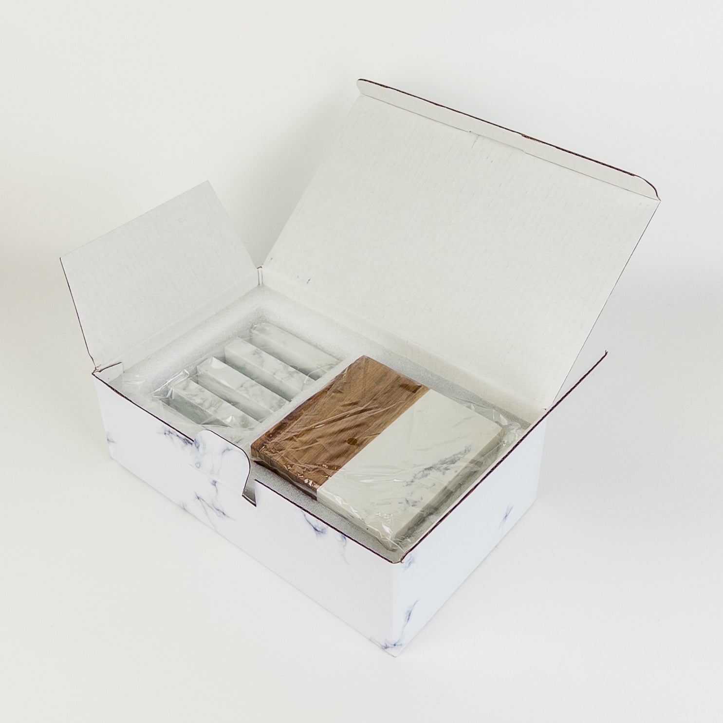 Acacia Wood & Marble Coaster Set with Stand