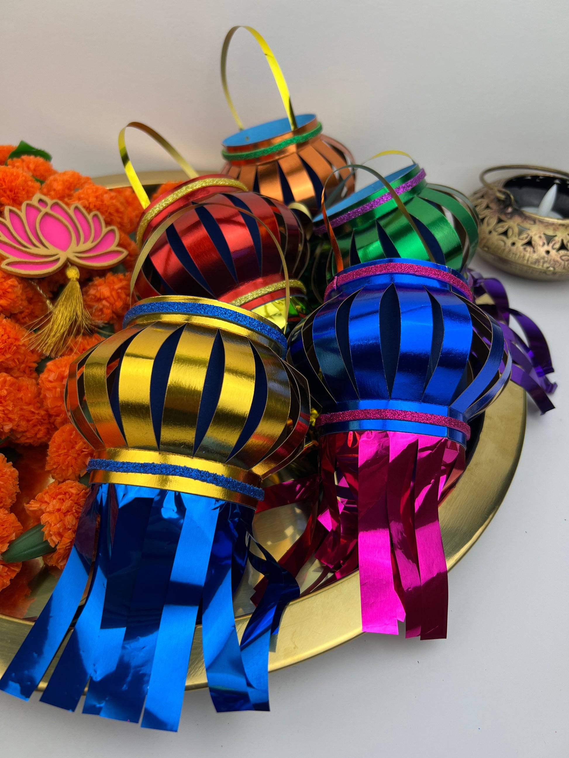 These vibrant Deluxe set of 5 mini lanterns are a fun, easy, and traditional way to celebrate Diwali and other festive occasions. Each lantern comes pre-assembled and ready to hang, making it quick and effortless to decorate your home.